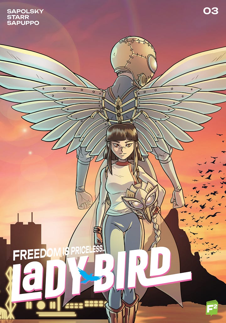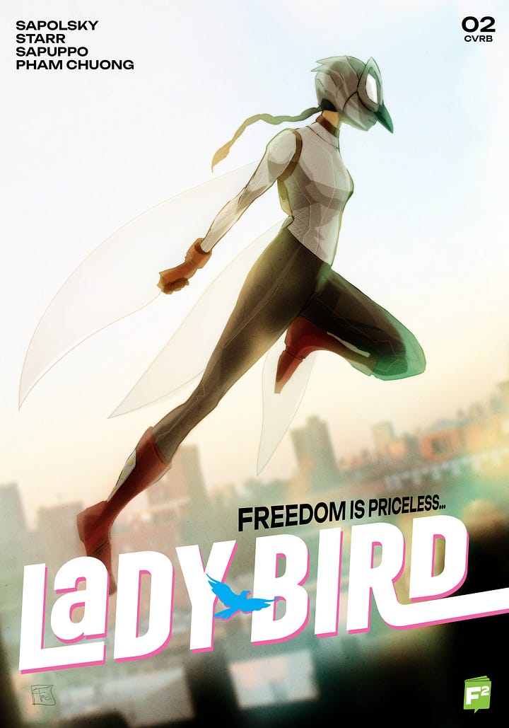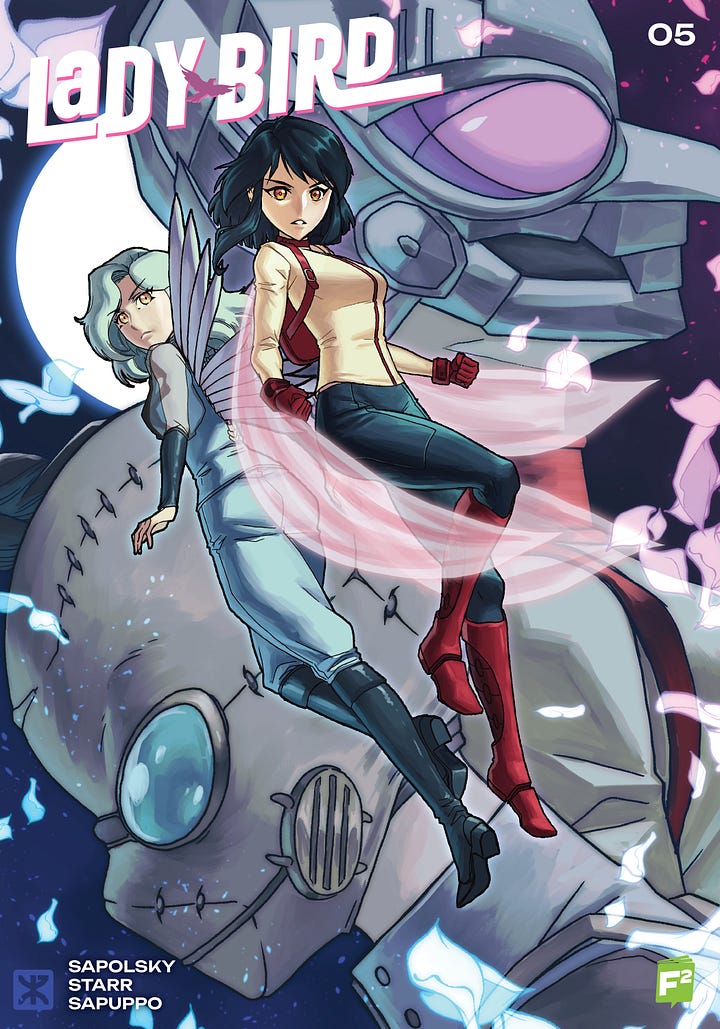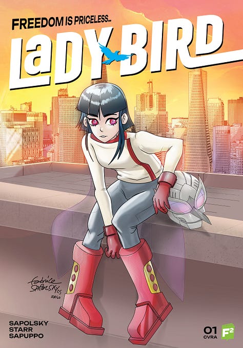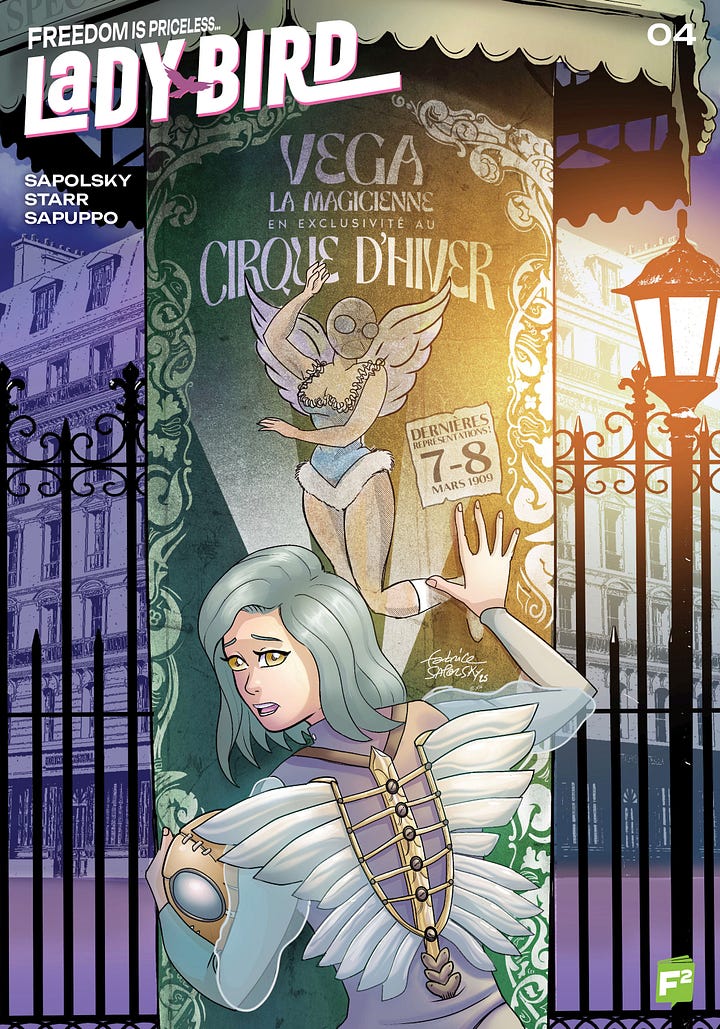 All five issues can be ordered by your favorite comic book stores at Philbo Distribution, and they’re going to be added gradually on the FairSquare Graphics webstore. I also wrote a new issue of Lady-Bird that I hope can be drawn this year, a first since 2022. Felt good to get back to this series.